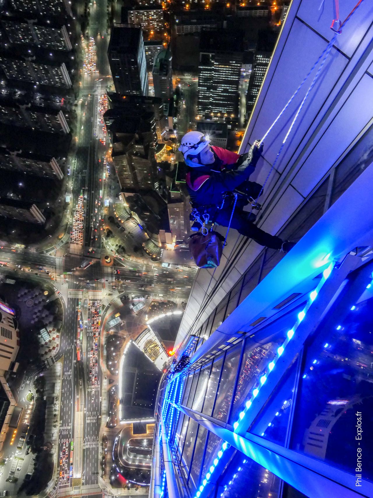 La mise en œuvre d'un tel dispositif aura nécessité 8 km de cordes, 2000 mousquetons et 4 km de câbles électriques. Une équipe de 29 cordistes aura travaillé une quinzaine de nuits pour tout installer. 4 nuits auront suffi à tout démonter. La météo a été bien clémente avec nous…